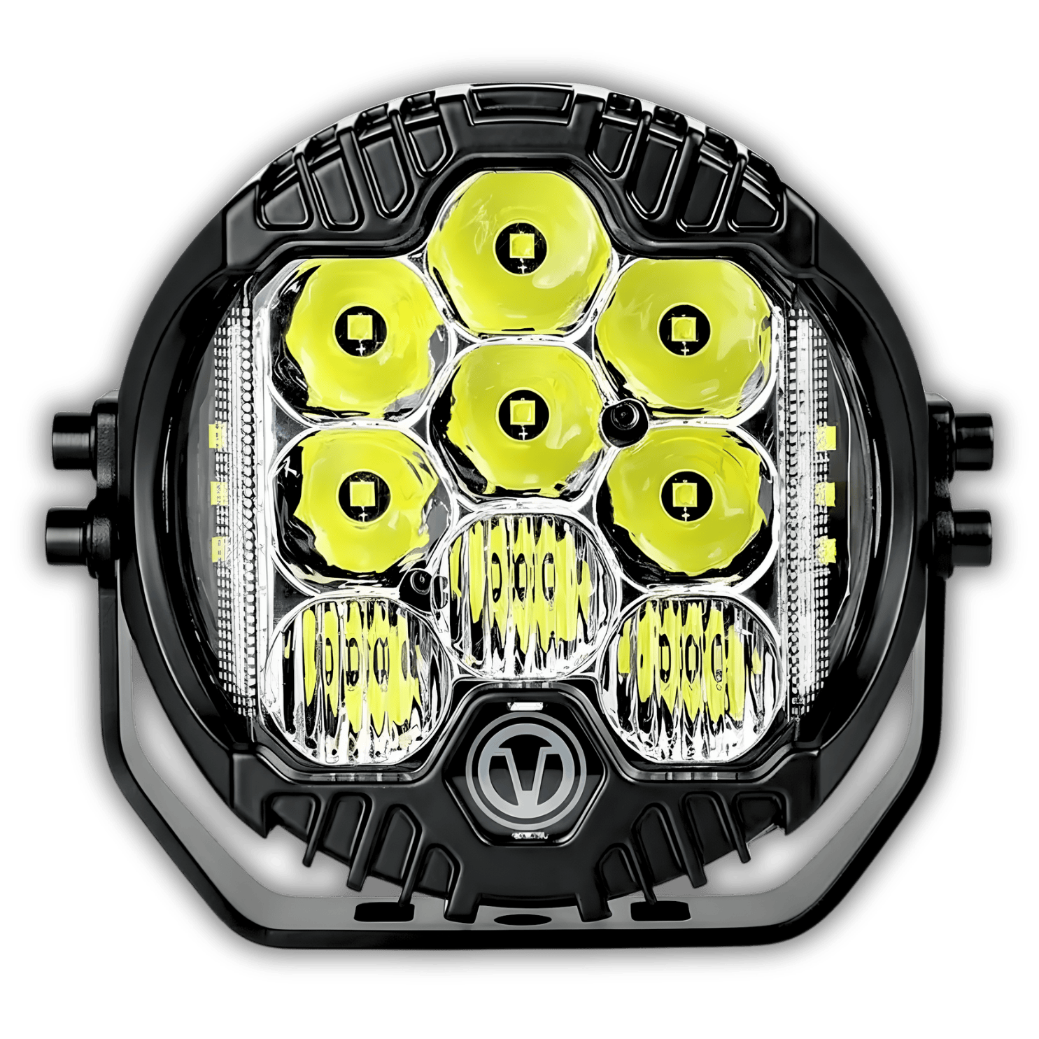Com 25 LEDs de alta intensidade com chip CREE, cada farol oferece iluminação forte, estável e econômica.
